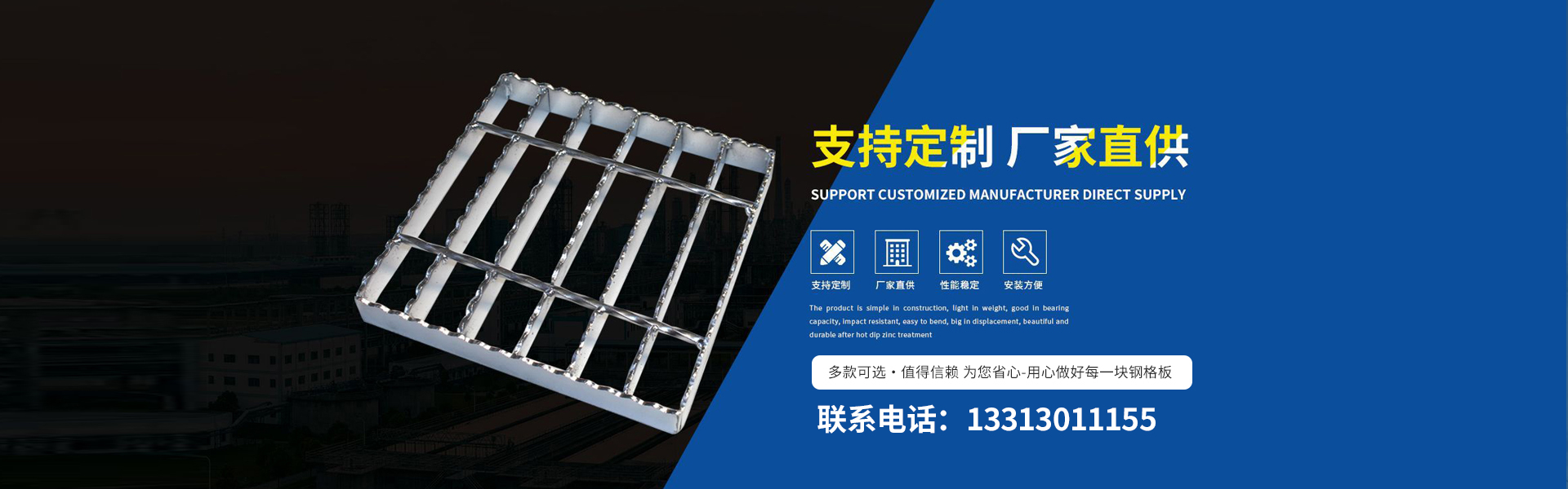 公司產品有鋼格板、踏步板、溝蓋板、鋼格柵板、等產品。對于客戶要求的不同工作環(huán)境,承載力、跨度、形狀和顏色,提供相應設計方案及成本控制。 我公司秉承“以客戶為中心,以低價高品質為基礎,以客戶滿意為目標”的經營理念,以優(yōu)惠的價格、好的技術設備來贏得用戶的信賴,衡水新超峰金屬網(wǎng)業(yè)制造有限公司熱誠歡迎廣大客戶光臨。 衡水新超峰金屬網(wǎng)業(yè)制造有限公司成立迄今,正是由于各界朋友們對于我們的持續(xù)支持與關懷,及本公司全體同仁辛勤的耕耘與付出,使公司持續(xù)發(fā)展與茁壯成長。展望未來,我公司人懷著感恩之心,更加追求...